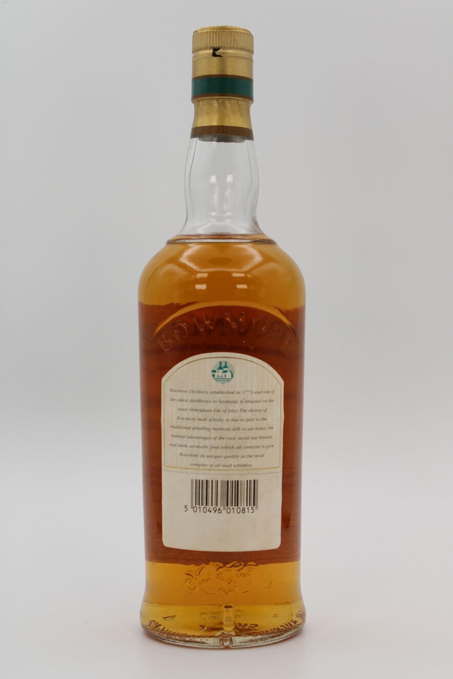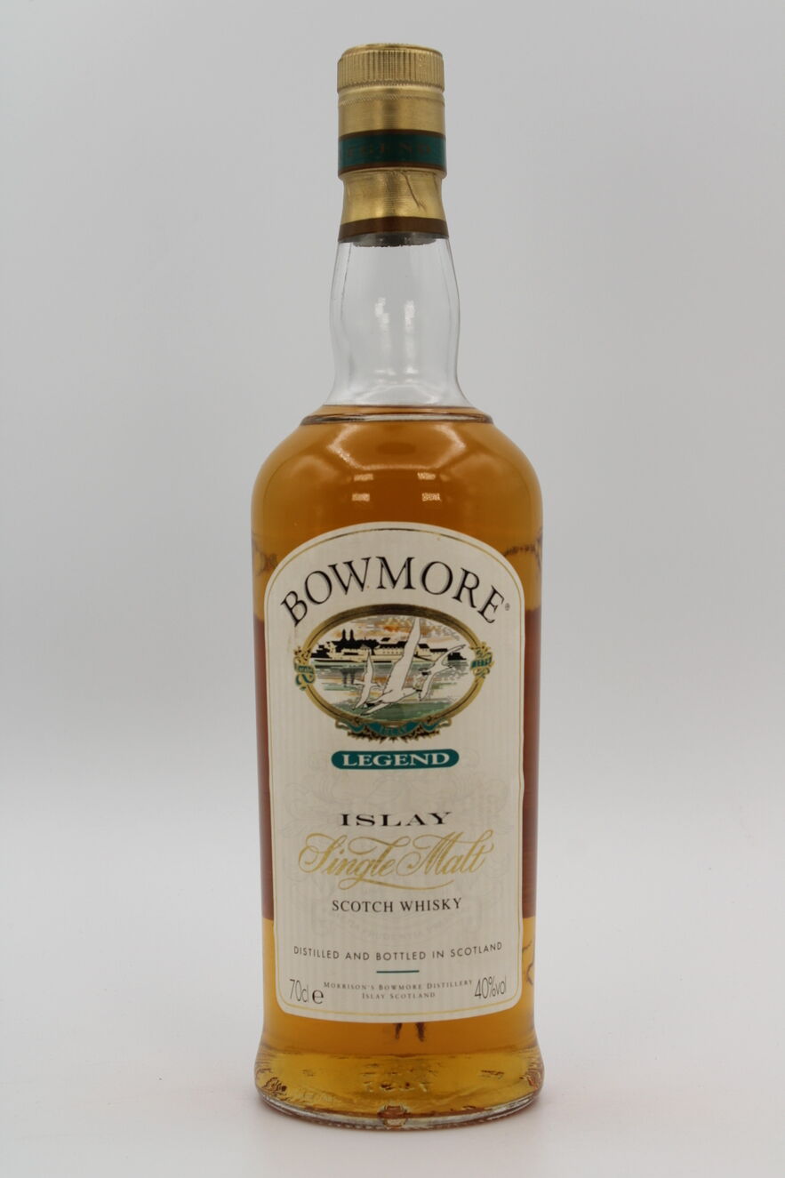A bottle of the Bowmore Legend Islay single malt Scotch whisky.