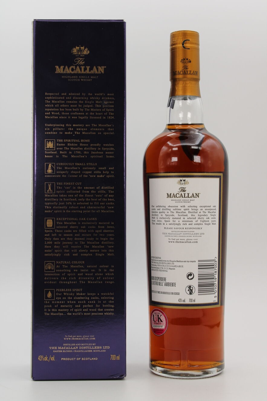 The Macallan 18 year old 1995, matured in selected Sherry Oak Casks from Jerez, Spain.