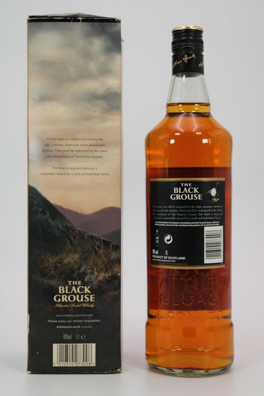 An older bottling of Famous Grouse, Black Grouse which is now named Smoky Black.