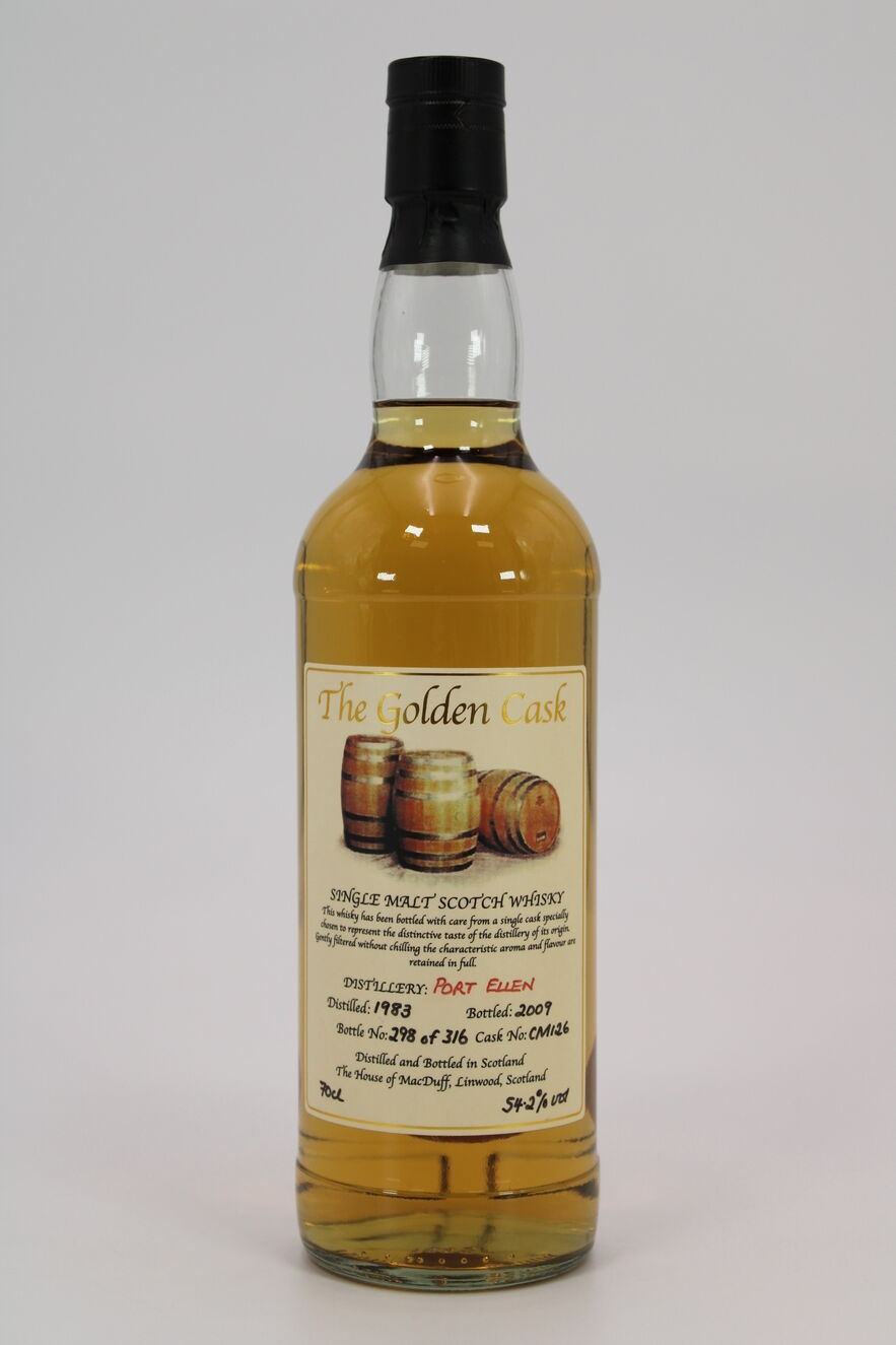 A single cask bottling of Port Ellen distilled in 1983, matured in cask CM126 and bottled in 2009 by The House of Macduff. Linwood, Scotland. One of only 316 bottles.