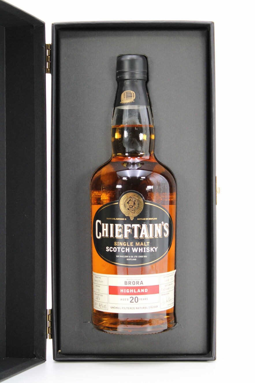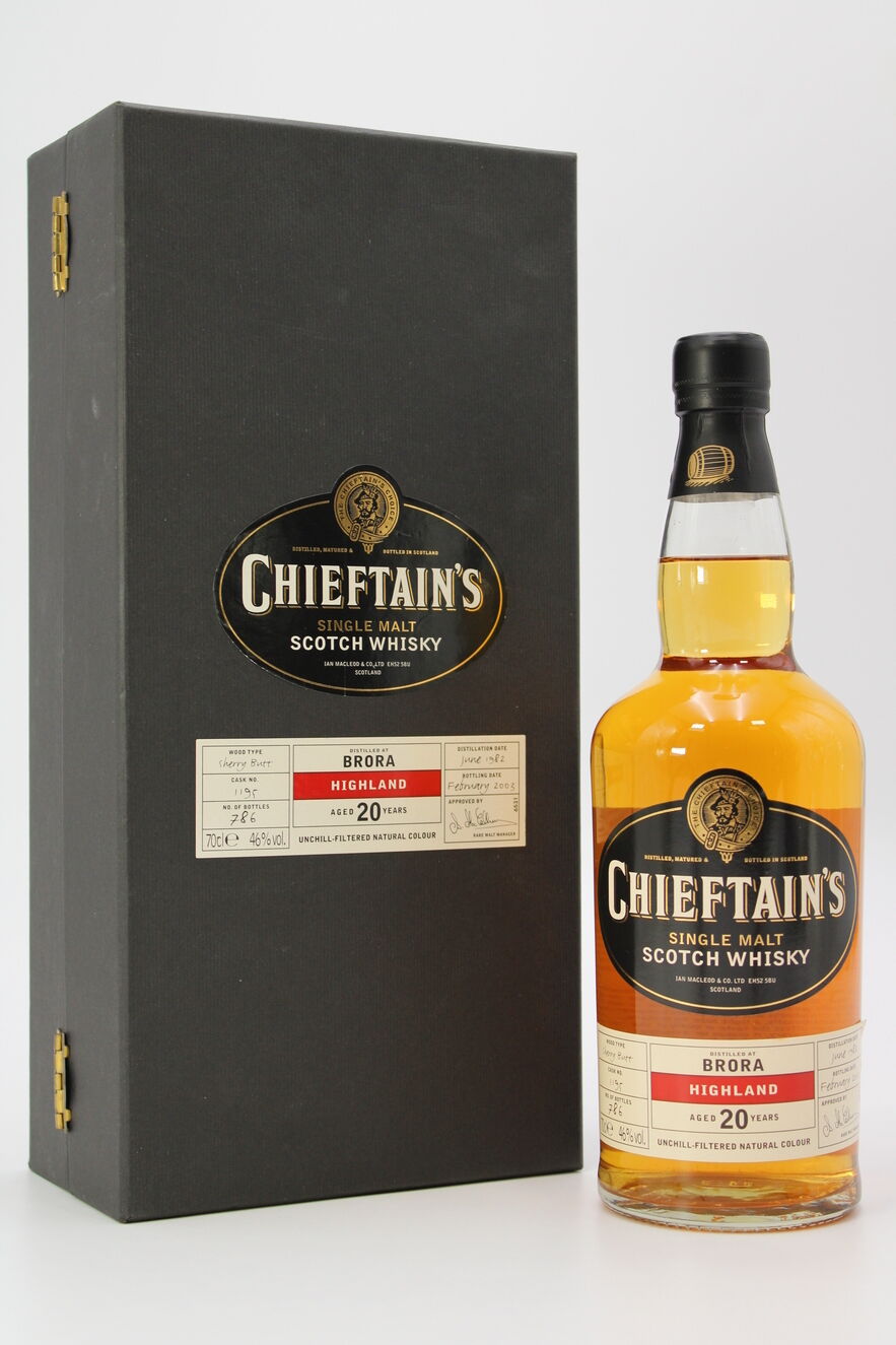 A rare old Brora 20 year old bottled by Chieftain's. Distilled in June 1982, matured in Sherry Butt 1195 and bottled in February 2003. This is one of only 786 bottles.