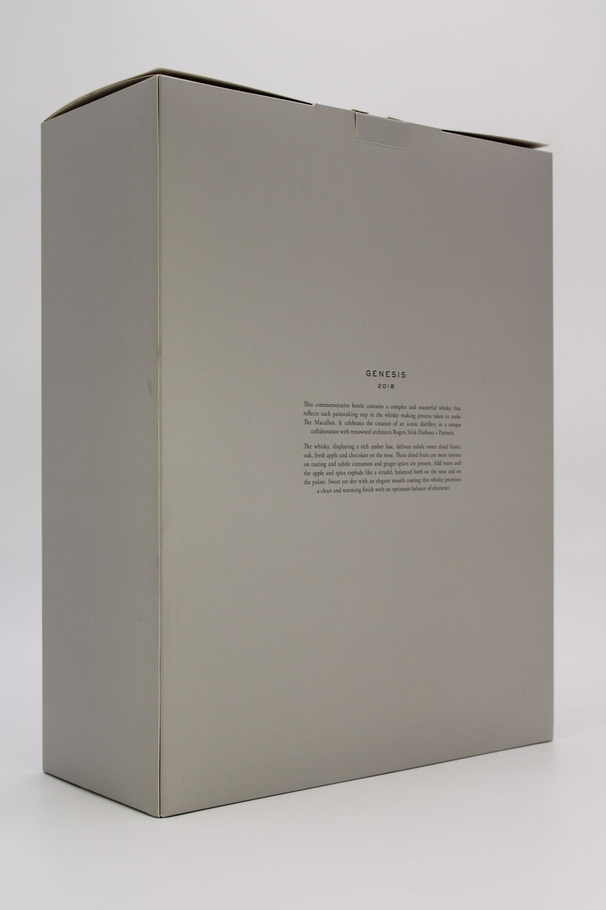 A limited edition from Macallan released in 2018. Genesis celebrates Macallan's partnership with Rogers Stirk Harbour & Partners, the architects who designed the exceptional new distillery.