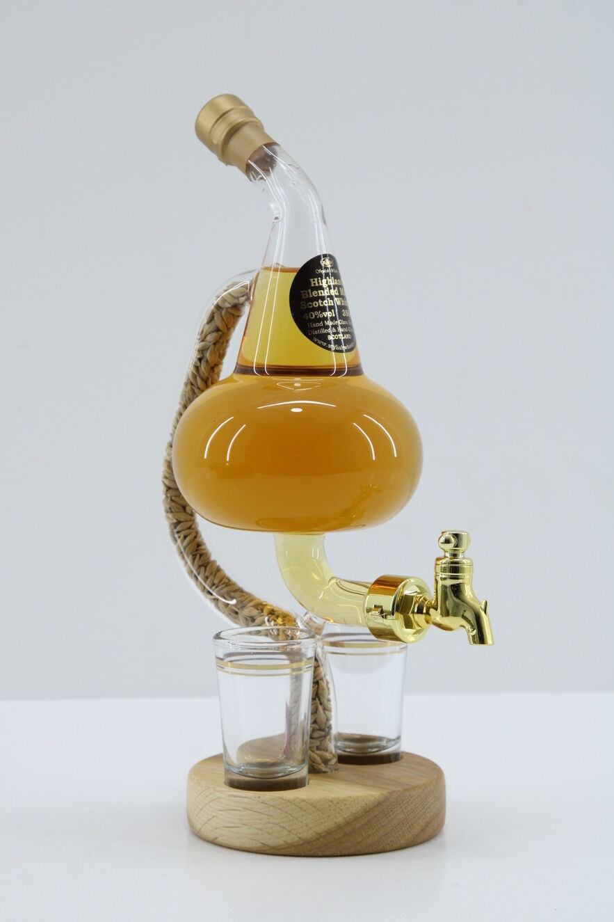 A 35cl hand crafted glass globe and 2 glasses from Stylish Whisky's Alba collection. Containing a blended malt scotch whisky.