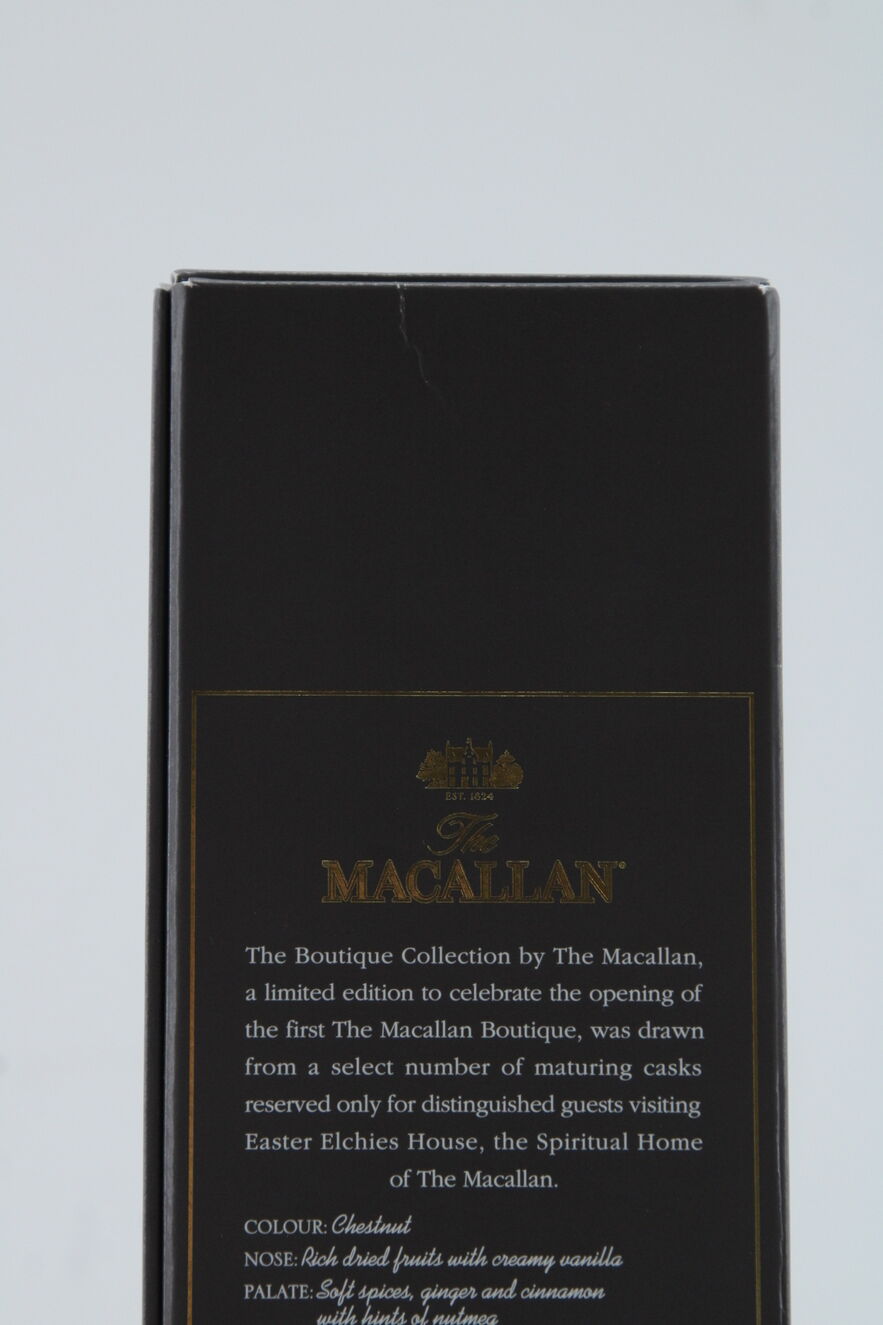 This bottle was drawn from a selection of matured casks reserved only for distinguished guests visiting Easter Elchies House which is the spiritual home of the Macallan.