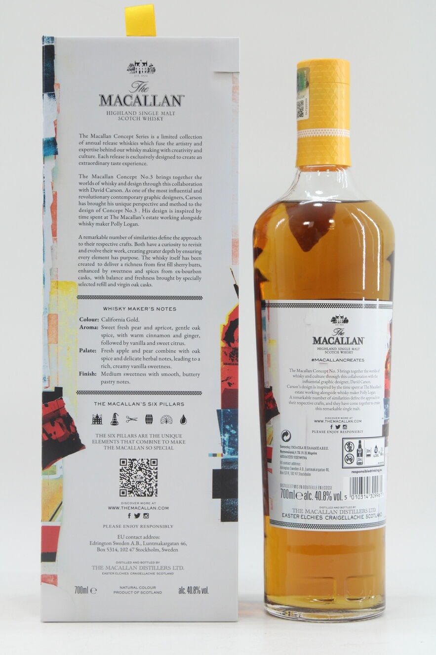The third and final release in the Concept Series. Released in 2020, Concept Number 3 is a collaboration between the Speyside giant and revolutionary contemporary graphic designer David Carson. The bottle was made available at Global Travel Retail outlets and The Macallan Airport Boutiques.